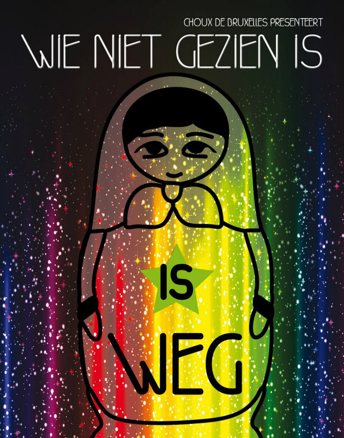 WIE NIET GEZIEN IS, IS WEG is een hedendaags sprookje over de zoektocht naar identiteit in een competitieve maatschappij. Een interactieve voorstelling die met humor het publiek uitnodigt tot kritisch kijken en tegelijk een muzikale uitlaatklep biedt voor de emoties die het oproept. In tijden van crisis zijn superhelden onbetaalbaar. Alleen een medeplichtig samenspel tussen publiek en acteurs kan dit verhaal tot een goed einde brengen.